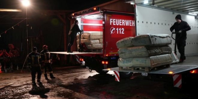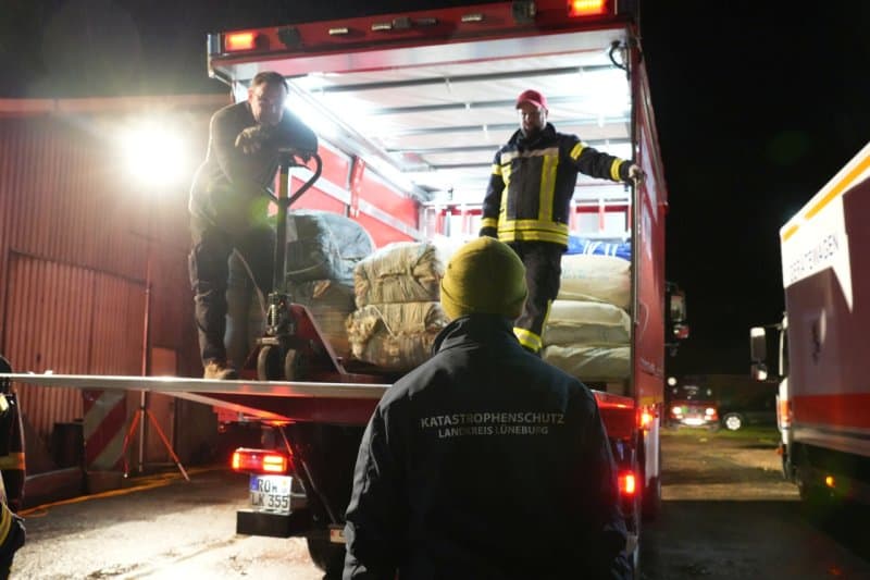 Der Landkreis Lüneburg unterhält in Karze ein Sandsacklager für den Katastrophenschutz. Hier hat der 3. Zug der Stadtfeuerwehr und die Feuerwehr Bleckede am späten Nachmittag bei der Bereitstellung von 100.000 Sandsäcken auf Paletten unterstützt.