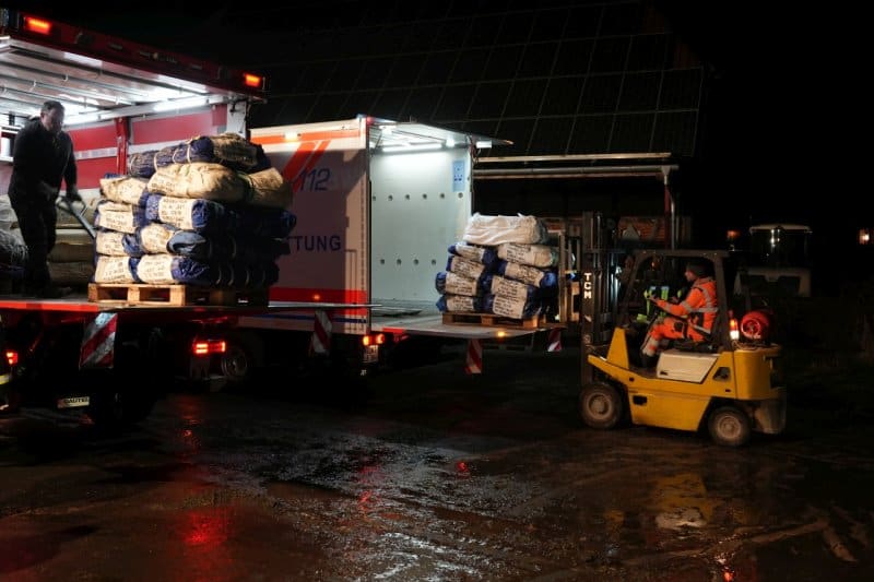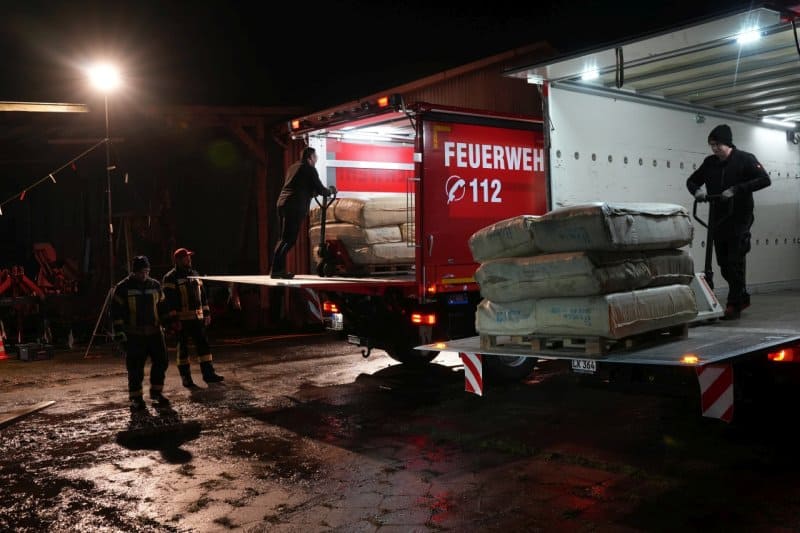 Die Sandsäcke wurden von drei LKW aus Rotenburg abgeholt und ins Hochwassergebiet transportiert.