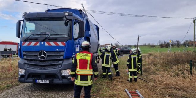 Die Feuerwehren Neu Garge/Stiepelse und die Feuerwehr Bleckede „befreiten“ den LKW und sicherten provisorisch den umgestürzten Telefonmast.