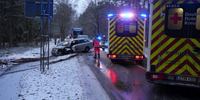 Einsatz für Rettungsdienst, Polizei und die Feuerwehr Bleckede am Freitagnachmittag auf der L221 Richtung Neetze: