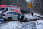 Ein Toyota Kombi war gegen einen Straßenbaum geschleudert.