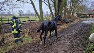 Am Freitagnachmittag befreiten die Feuerwehren des 3. Zuges ein Fohlen, das sich am Gatter verkeilt hatte.
