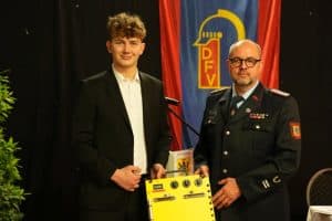 Als weitere Spende überreichte der Haus- & Hofservice Breese ein “Flachgeschenk” an den Förderverein der Feuerwehr.
