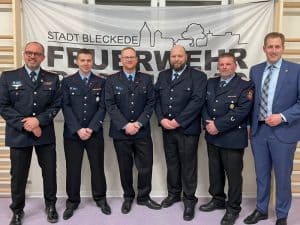 Beförderungen Führungskräfte, von links: Lorenz Reimers, Björn Evers, Uwe Schütte, Maik Berkenbusch, Michael Warner, Dennis Neumann