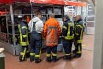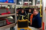 Neben der Ausrüstung der Fahrzeuge gab es noch eine Ausbildungseinheit der Firma Westfalen Medical: Mit einem Spezialfahrzeug werden medizinische Sauerstoffflaschen gefüllt und ein Mitarbeiter erläuterte den Einsatzkräften die Technik und die Sicherheitseinrichtungen im Fahrzeug.
