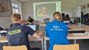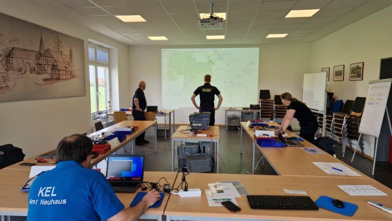 Die Lagemeldungen aus den Einsatzabschnitten werden an die Kommunale Einsatzleitung (KEL) in Reinstorf übertragen und weiterverarbeitet.