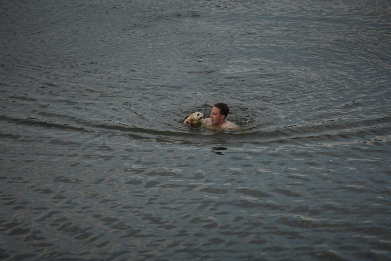 Der 17 Jahre alte Mischling schwamm weiter im Hafen und hörte nicht auf die Rufe.