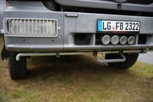 Unter dem Fahrzeug sind drei Sprühbalken zum Selbstschutz
