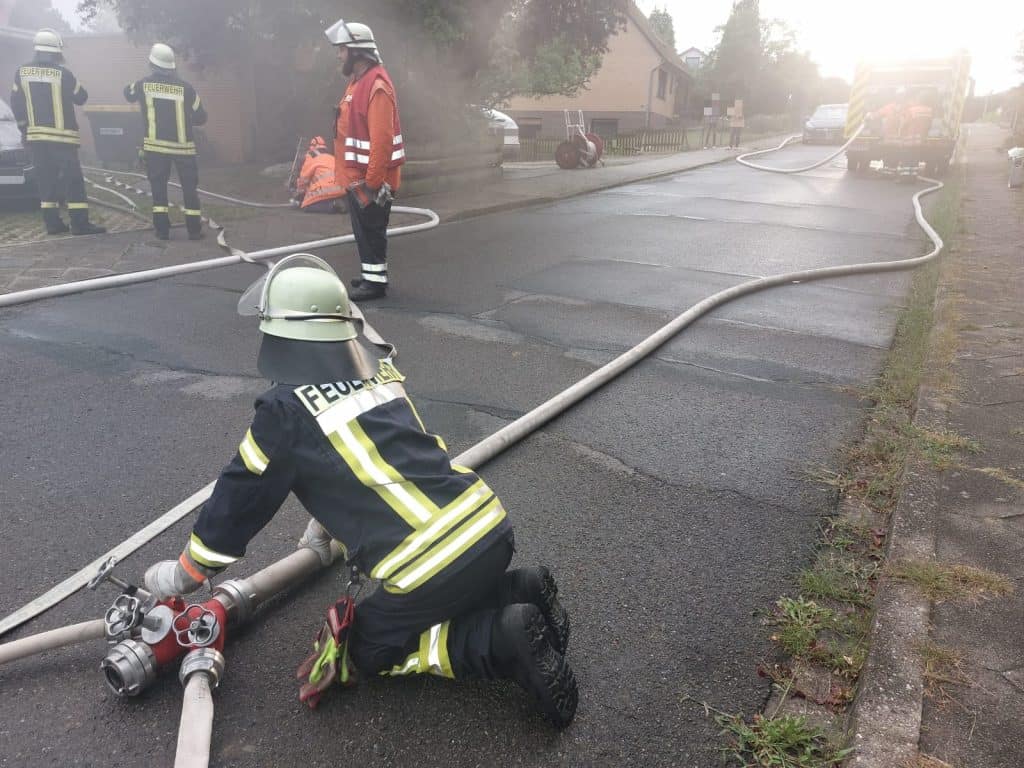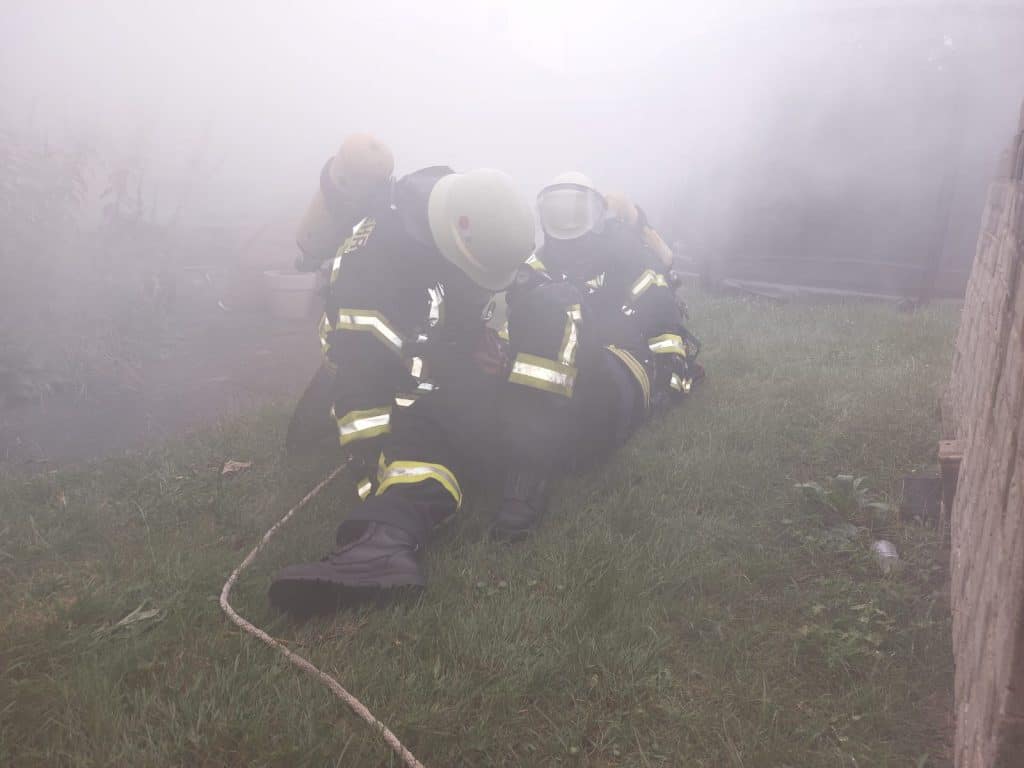 Das Thema der Zugübung ist ein Feuer mit Menschengefährdung – somit werden Menschrettung, Wasserförderung und Brandbekämpfung geübt.