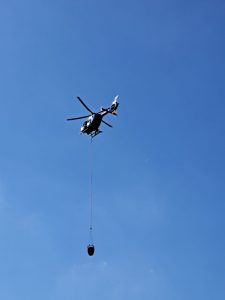 Mit zwei Hubschraubern wird der Einsatz mit Außenlastbehältern geübt – im Bereich Hafen/ Kohlenplatz ist insbesondere am Nachmittag mit Hubschrauberanflügen und Fluglärm zu rechnen.