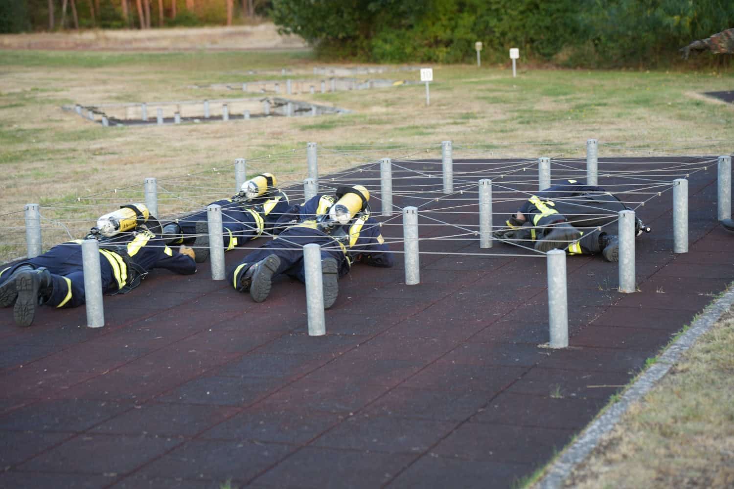 Aufgrund der Temperatur um 30°C und der teilweise schwierigen Hindernisse wurde auf die Atemschutzüberbekleidung verzichtet.