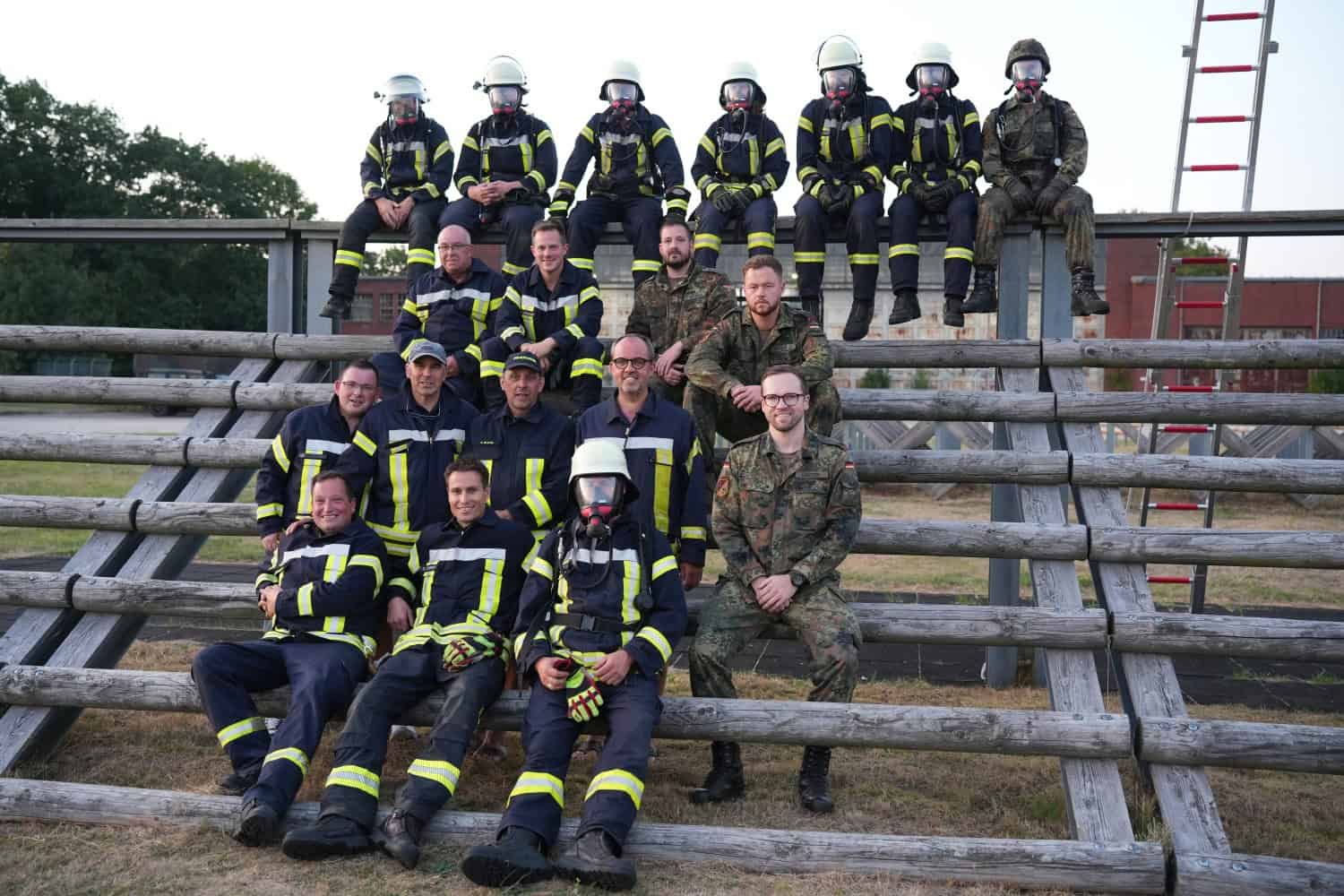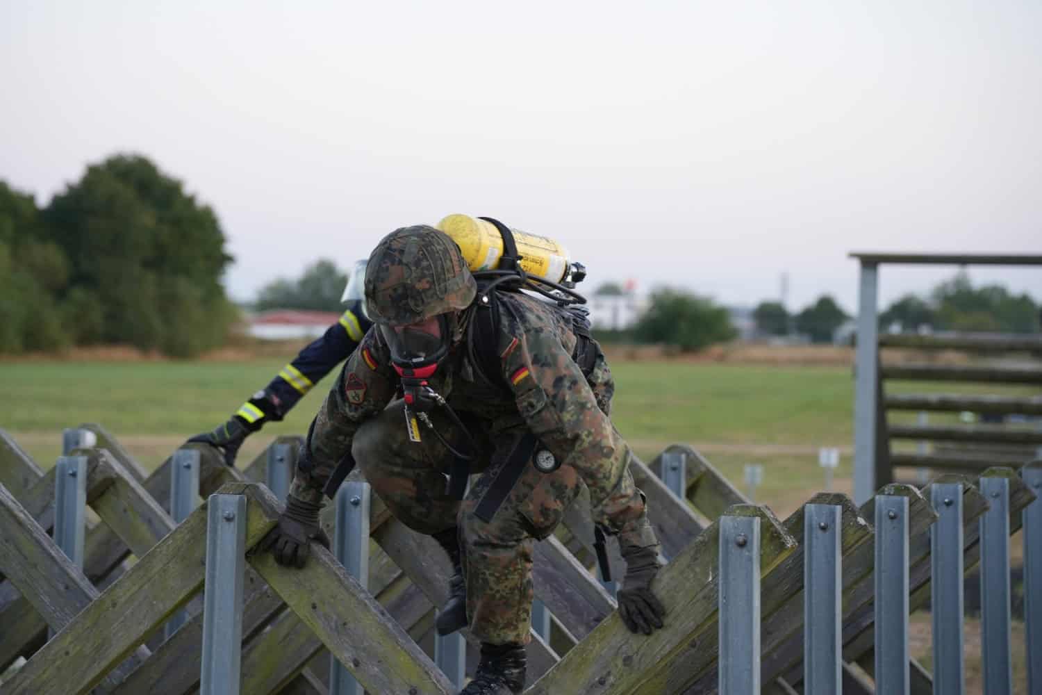 Nach einer Einweisung durch unsere Freunde der 2./ ArtLehrBtl 325 stellten sich 15 Atemschutzgeräteträger der neuen Herausforderung. Der letzte Trupp wurde von einem Soldaten komplettiert.