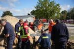 Im Einsatz war die Sandsackfüllmaschine des Landkreises, in zwei weiteren Ausbildungseinheiten wurden die Sandsäcke per Hand gefüllt. Die gefüllten Sandsäcke wurden an allen weiteren Stationen benötigt: