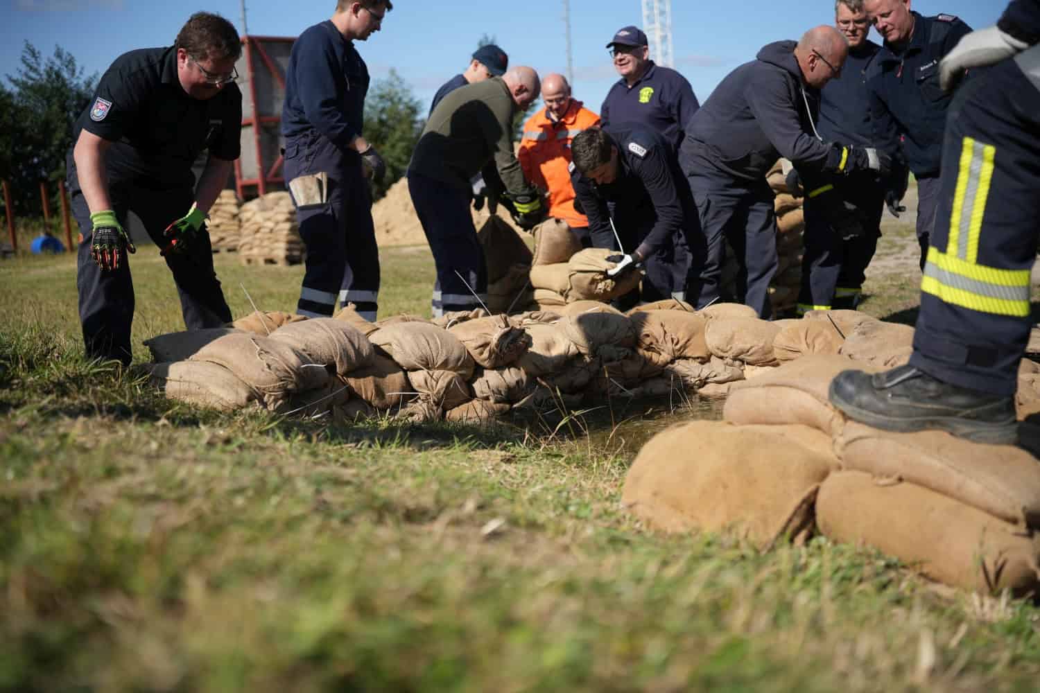 Nach der Theorie wurden an drei Stationen über 600 Sandsäcke gefüllt.