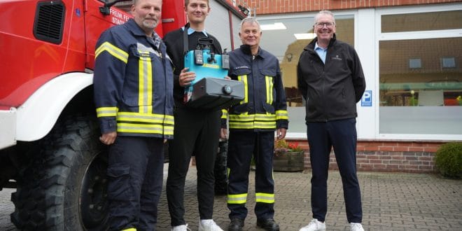 Am Dienstag übergab die Concordia-Versicherung Siegfried Ernst neues Einsatzgerät an den Förderverein der Ortsfeuerwehr Barskamp: