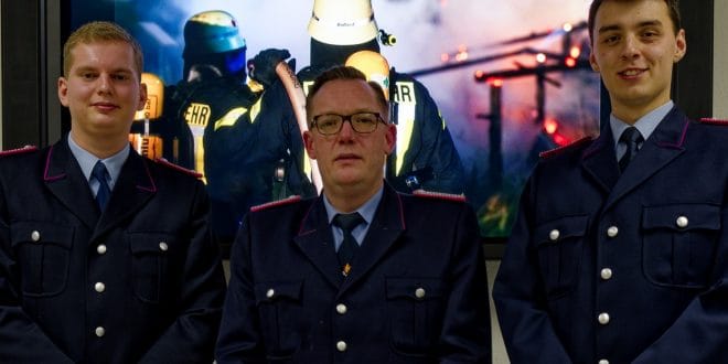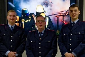 Ortsbrandmeister FlorianHornig mit seinen neuen Stellvertretern: Janek Voss (links) und Felix Kluth
