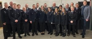 Kreisbrandmeister Matthias Lanius, Ortsvorsteher Wilhelm Kastens, Benedict Jackson, Alexandra Schödel, André Clement, Jan Mählmann, Finn Luca Mackowski, Arjen Loonstra, Alessandra Jackson, Kevin Gnatner, Lotta Brück, Ortsbrandmeister Olaf Jenkel, Luna Steckelberg, stv. Ortsbrandmeisterin Alexandra Hoyer, Lilly Steckelberg, Andre Brück, Daniel Dreyer, Lukas Morawe, Ulrich Hinrichs und Bürgermeister Dennis Neumann.