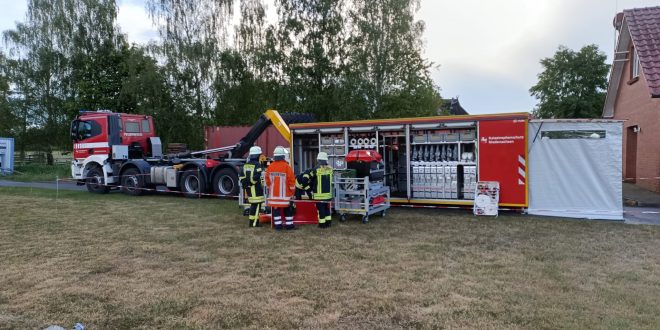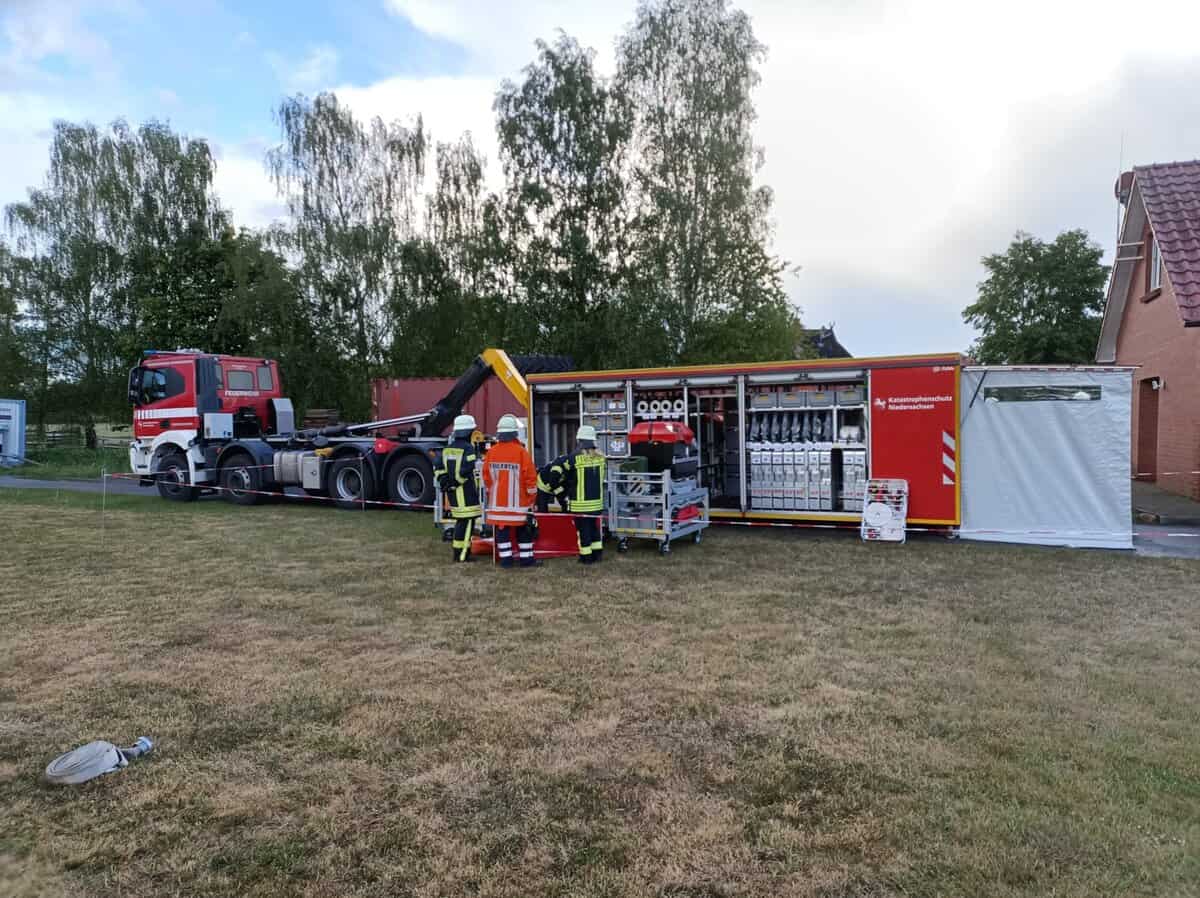 Neben Grundübungen wurde auch mit dem Abrollbehälter Vegetationsbrandbekämpfung gearbeitet – Dieses Fachmodul des Niedersächsischen Katastrophenschutz wird von der Feuerwehr Rosenthal betreut.