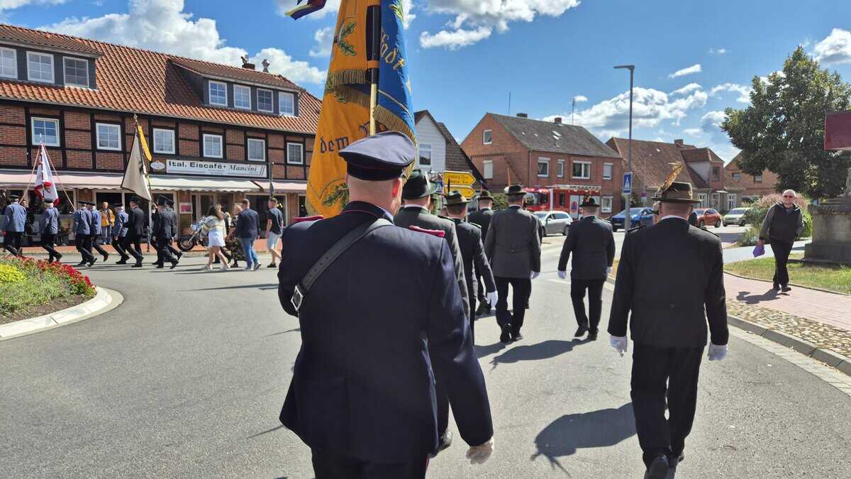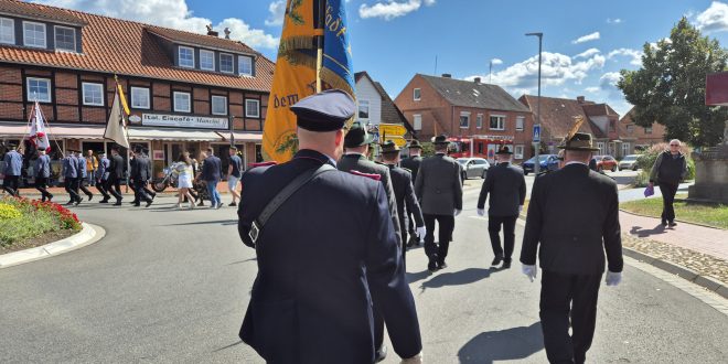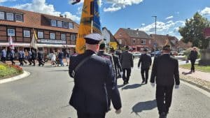 Die Feuerwehr ist mit einer Fahnenabordnung beim Festumzug dabei und sichert mit weiteren Einsatzkräften die Veranstaltung ab.