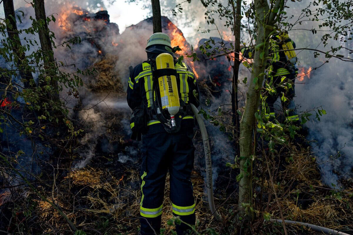 An der Einsatzstelle standen ca. 50 Strohballen im Vollbrand. Die Feuerwehr Radegast wurde mit einem weiteren Tanklöschfahrzeug alarmiert und von einem Garzer Landwirt kam ein Radlader zur Einsatzstelle.