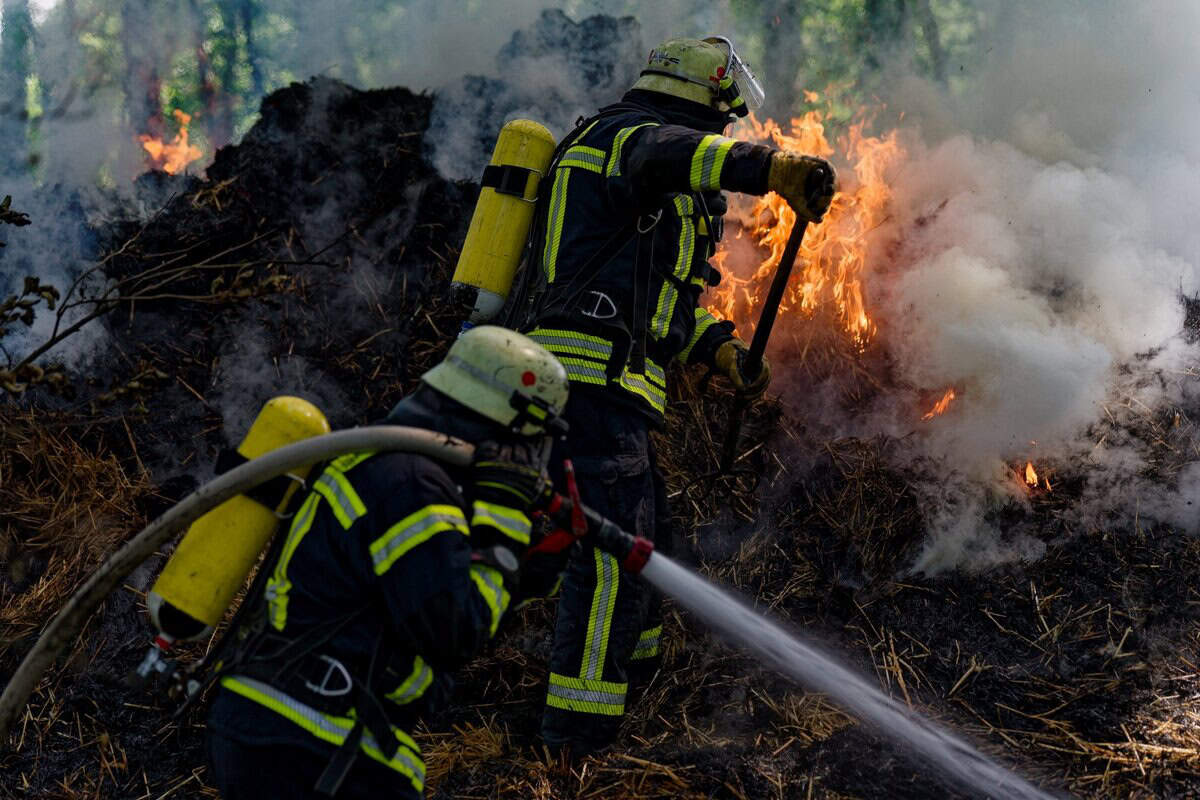 Das Feuer wurde von Diensthundeführern der Polizei gemeldet – somit war an der K5 ein Einweiser für die anrückenden Einsatzkräfte.