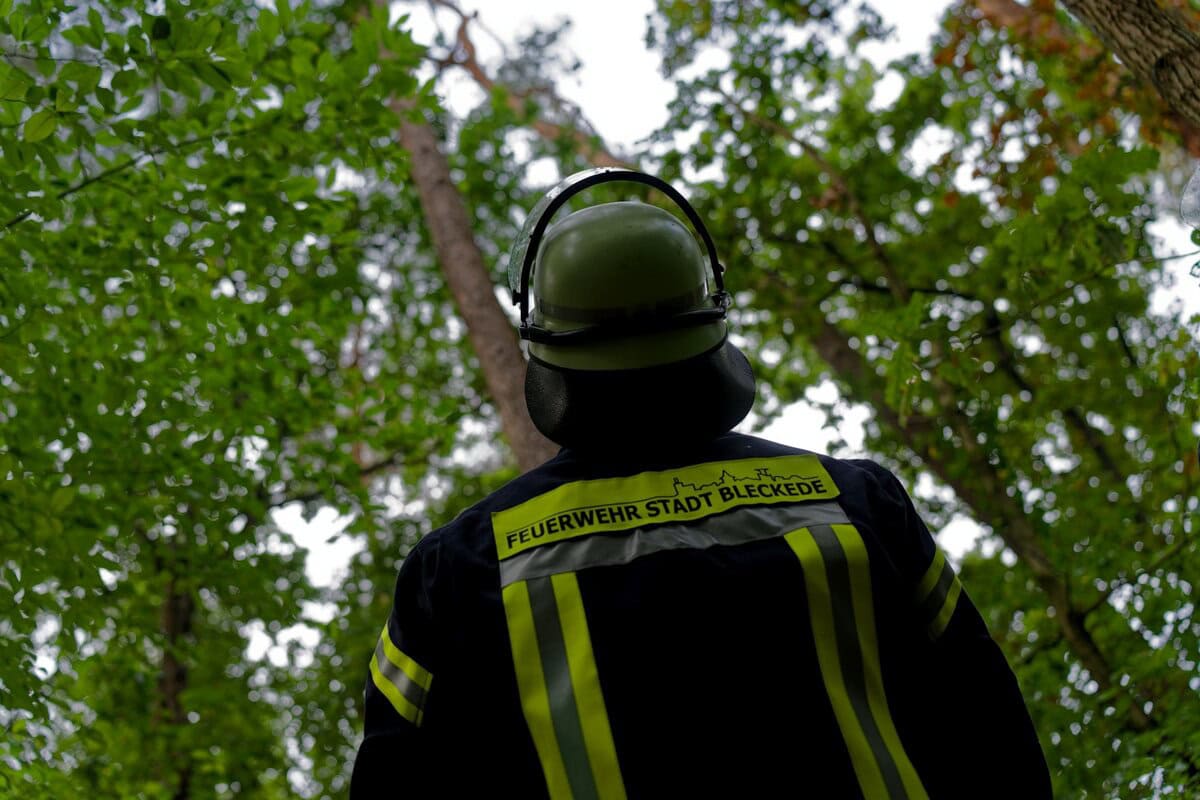 Das war zu hoch für tragbare Leitern und im Wald für die Drehleiter nicht erreichbar.