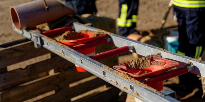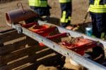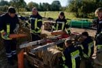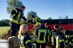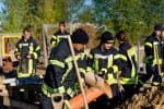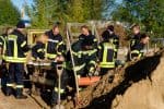 Gefahren beim Hochwassereinsatz, Sandsackfüllung und die Palettierung der Sandsäcke. Eine weitere Station der Ausbildung waren Sonderfahrzeuge.