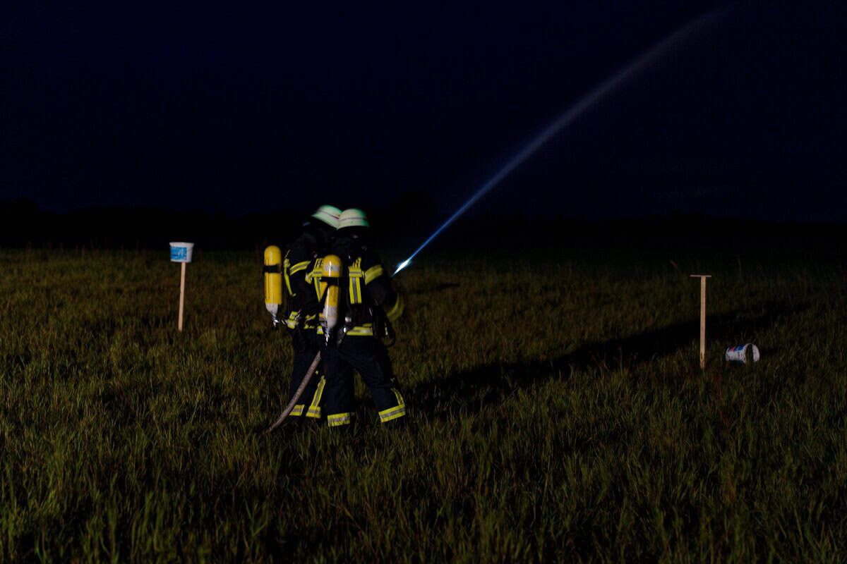 Technik und Taktik wurden aufgefrischt und vertieft: Das Atemschutzgerät musste im Löschfahrzeug angelegt werden, es folgte ein Löschangriff mit Hindernissen und eine Geschicklichkeitsübung.