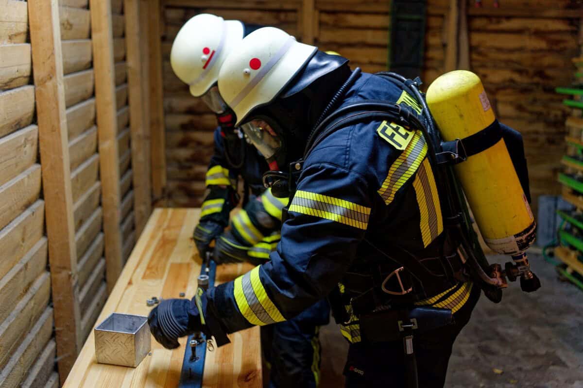 Die Personensuche im verrauchten Container und eine „Kommunikationsübung“ mit Schubkarre waren weitere Aufgaben für die über 10 Atemschutztrupps.