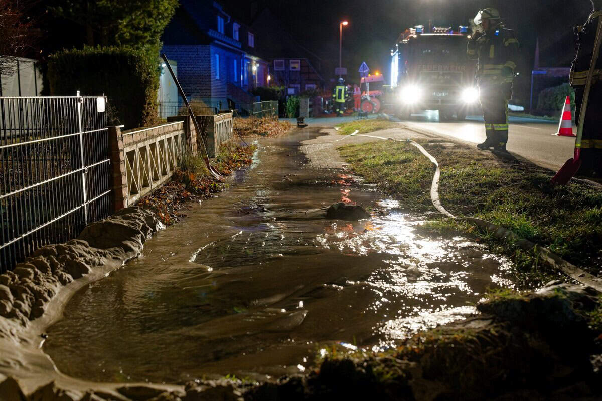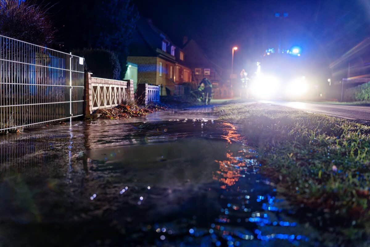 Die Feuerwehr leitete das Wasser in einen Gully um und pumpte bereits am Gebäude stehendes Wasser mit der Tauchpumpe ab. So konnte ein Wasserschaden im Keller verhindert werden.