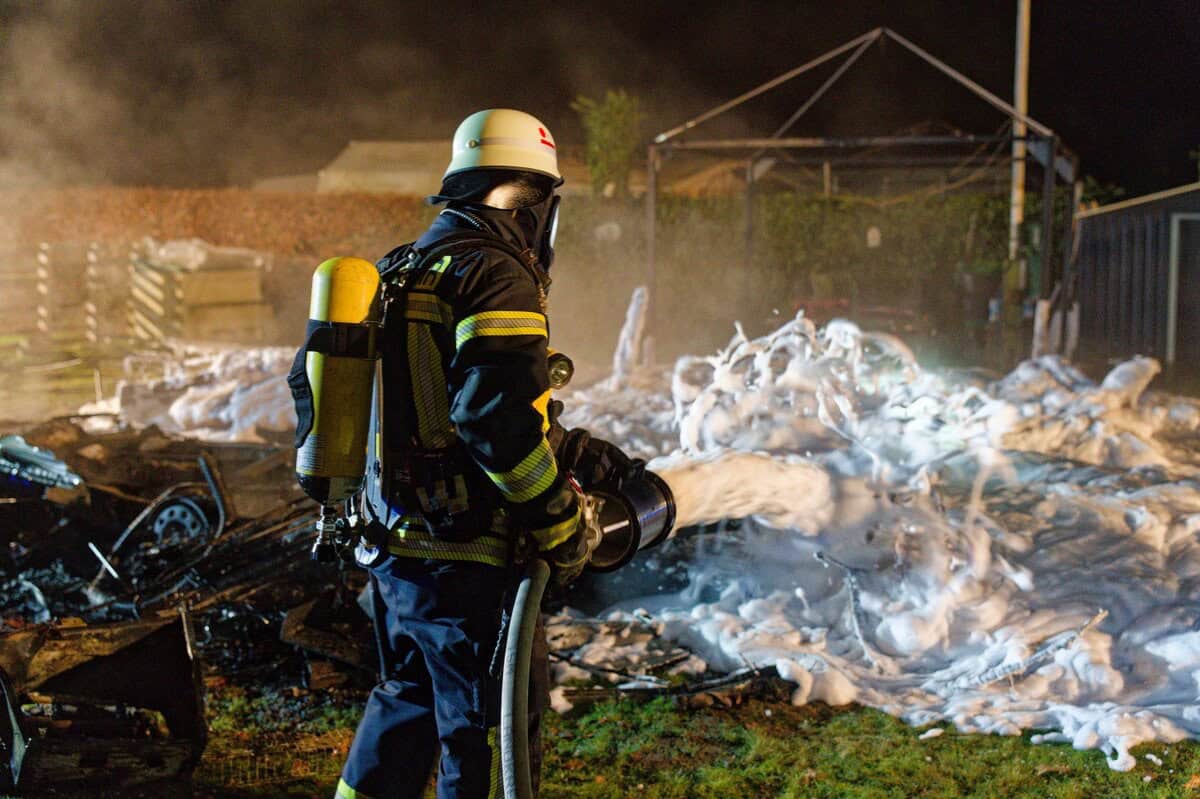 Die Brandstelle wurde nach Abschluss der Löscharbeiten mit Schaum abgedeckt.