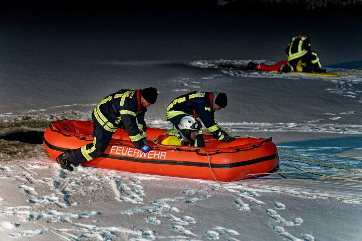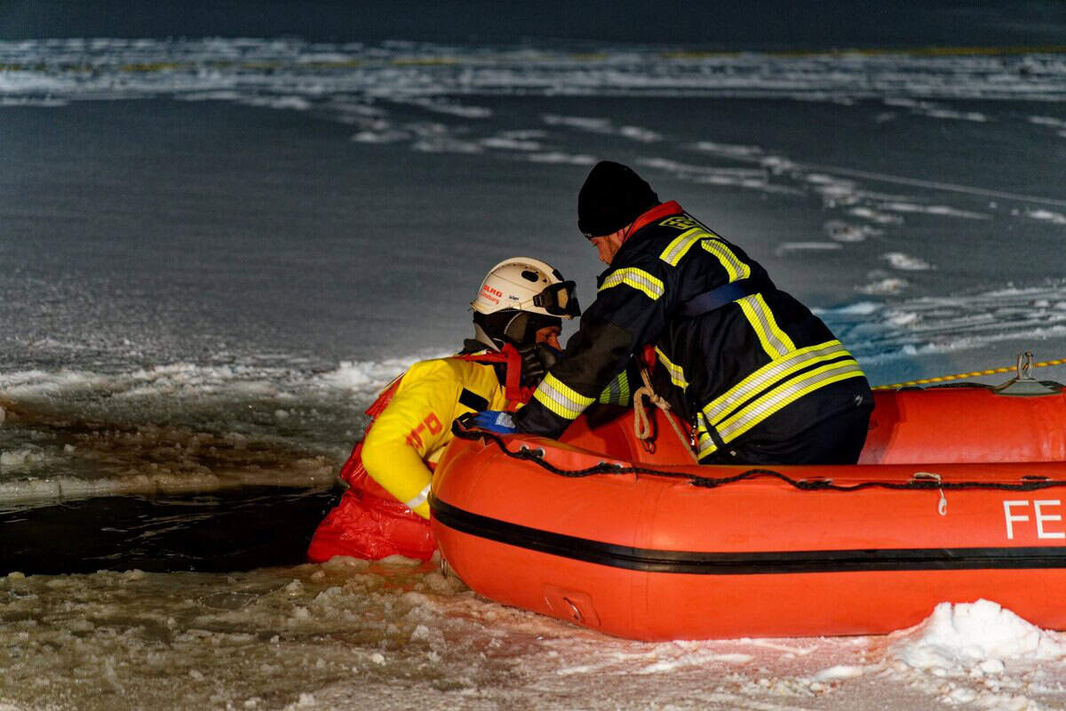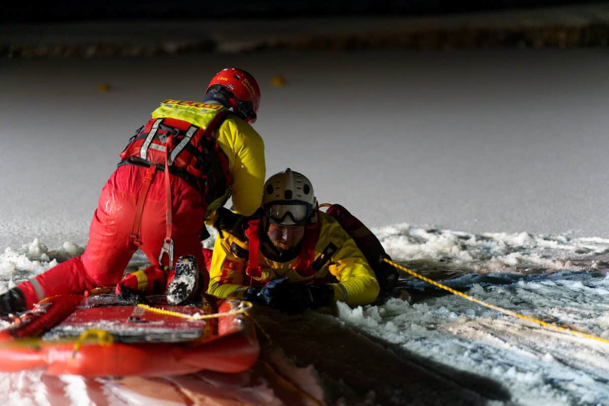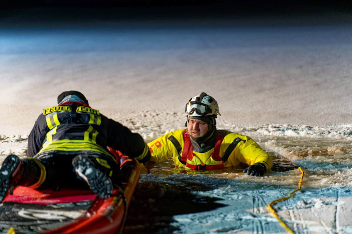 Alle Einsatzkräfte auf dem Eis waren mindestens mit Schwimmweste und Sicherungsleine ausgerüstet – Die Sicherheit hatte oberste Priorität!