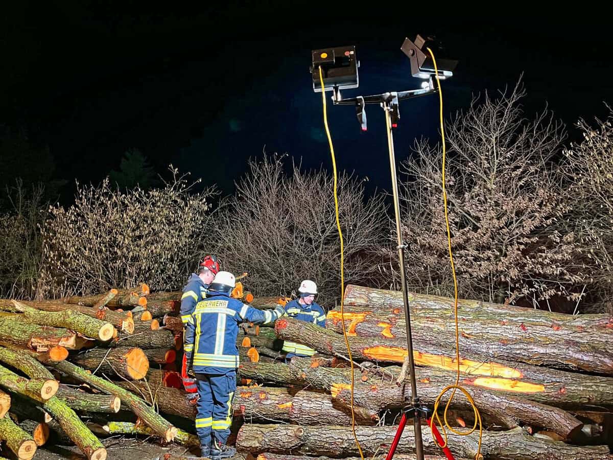 Mit Säbelsäge und Kettensäge wurde der im Holz eingeklemmte „Patient“ gerettet.