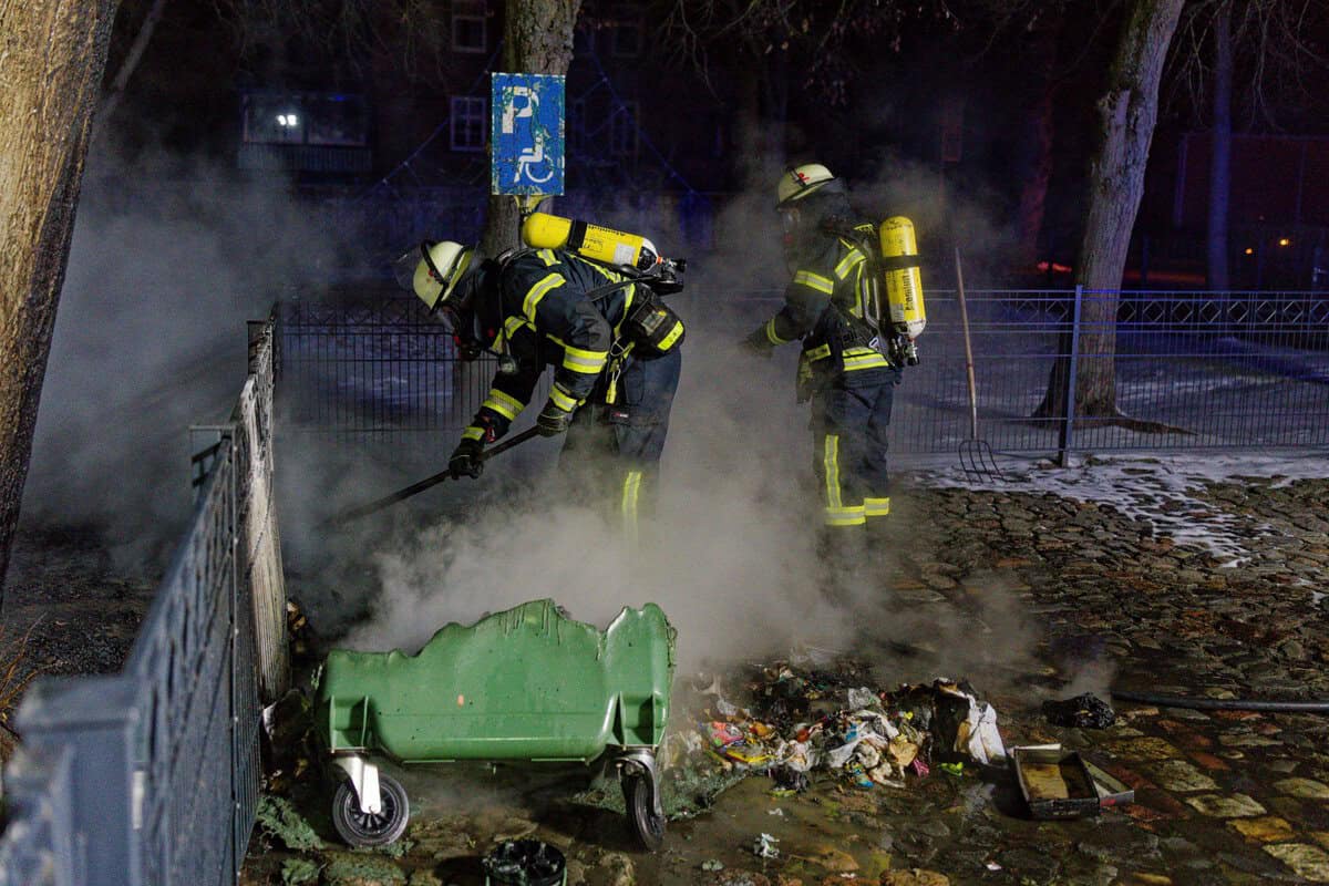 Die Müllcontainer wurden unter Atemschutz abgelöscht – Der Einsatz war nach einer halben Stunde beendet.