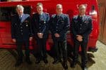 Beförderungen, von links: Ortsbrandmeister Ralf Bullmann, Kai-Uwe Koch, Alexander Zeitel und Stadtbrandmeister Falk Bardenhagen.