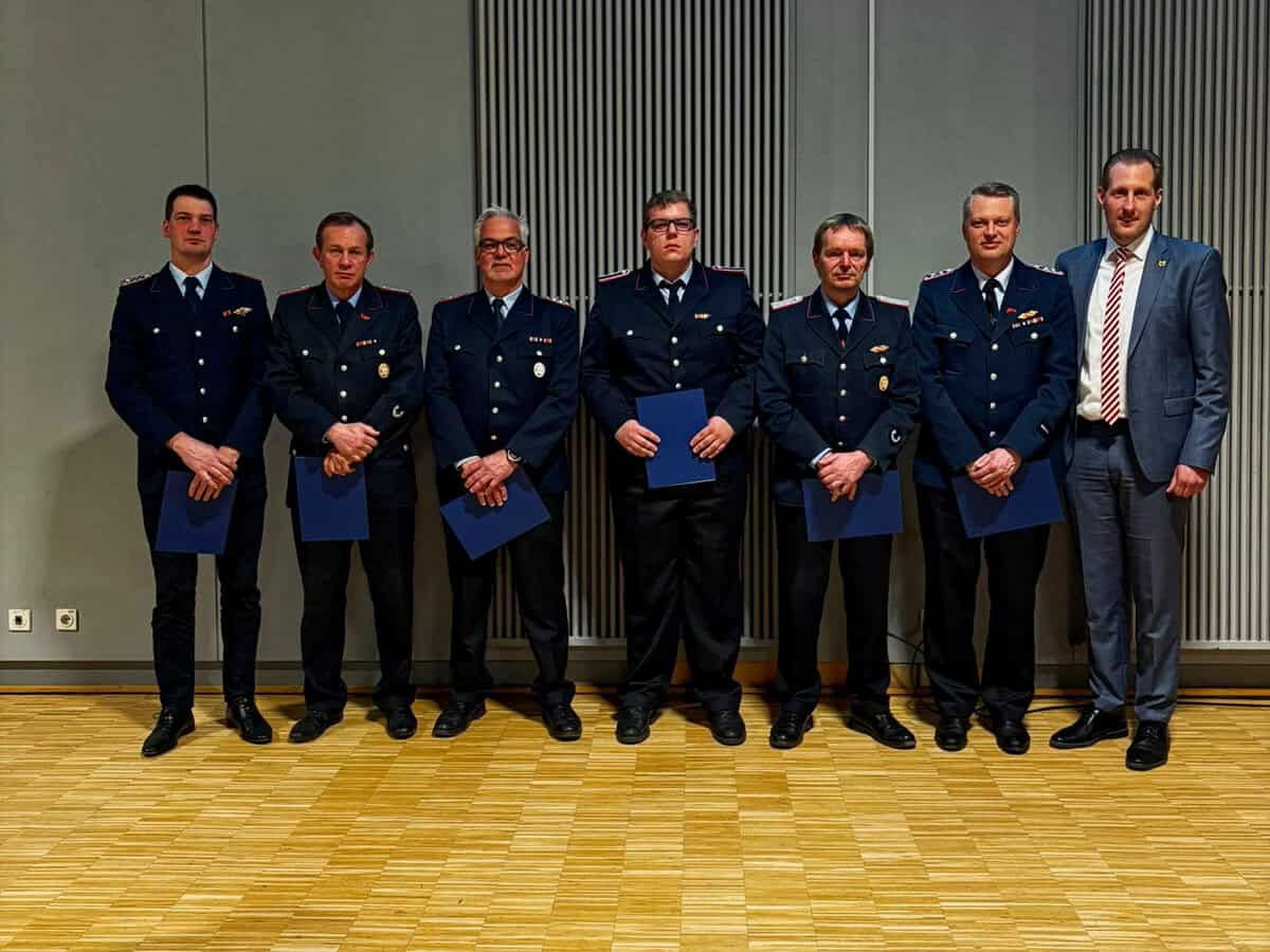 Im Rahmen der Ratssitzung am 19. März 2026 wurden Ehrenbeamte der Bleckeder Feuerwehren durch Bürgermeister Dennis Neumann ernannt und entlassen: