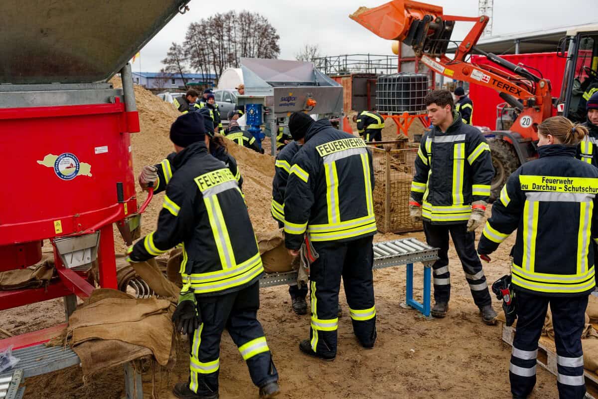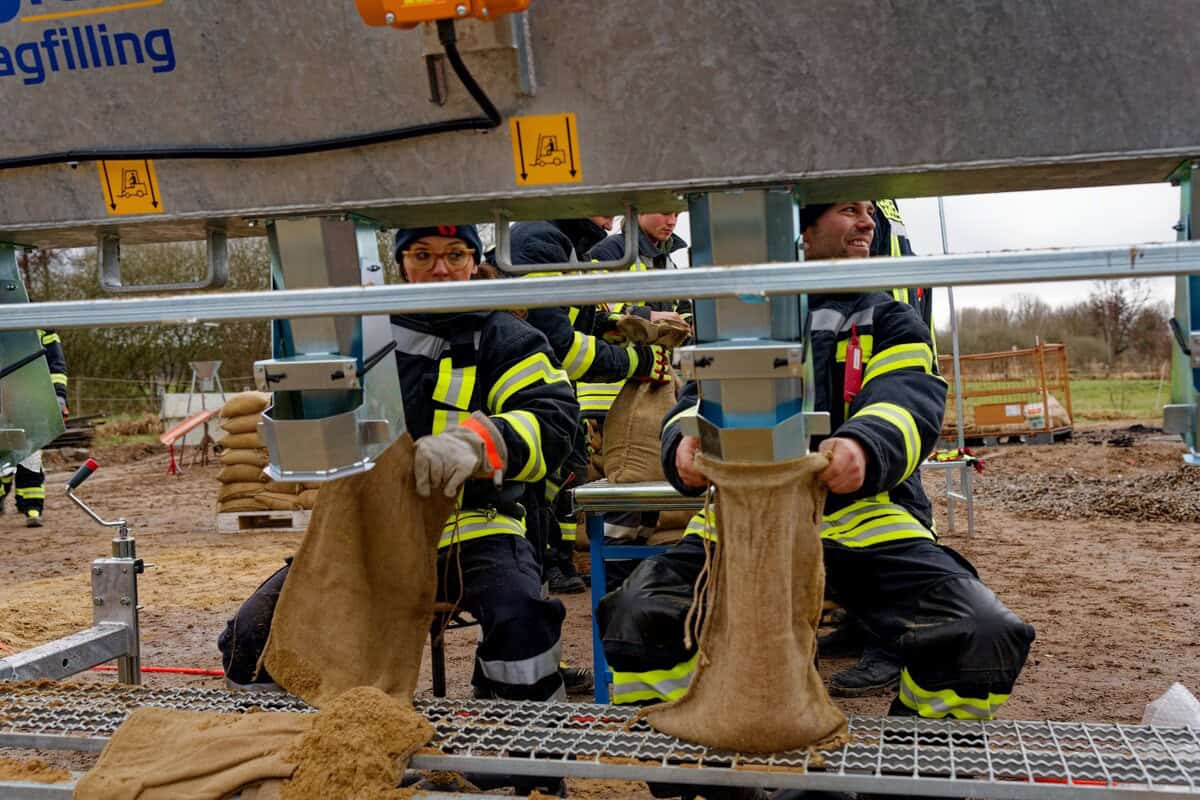 Nach der Theorie wurden an drei Stationen knapp 500 Sandsäcke gefüllt.