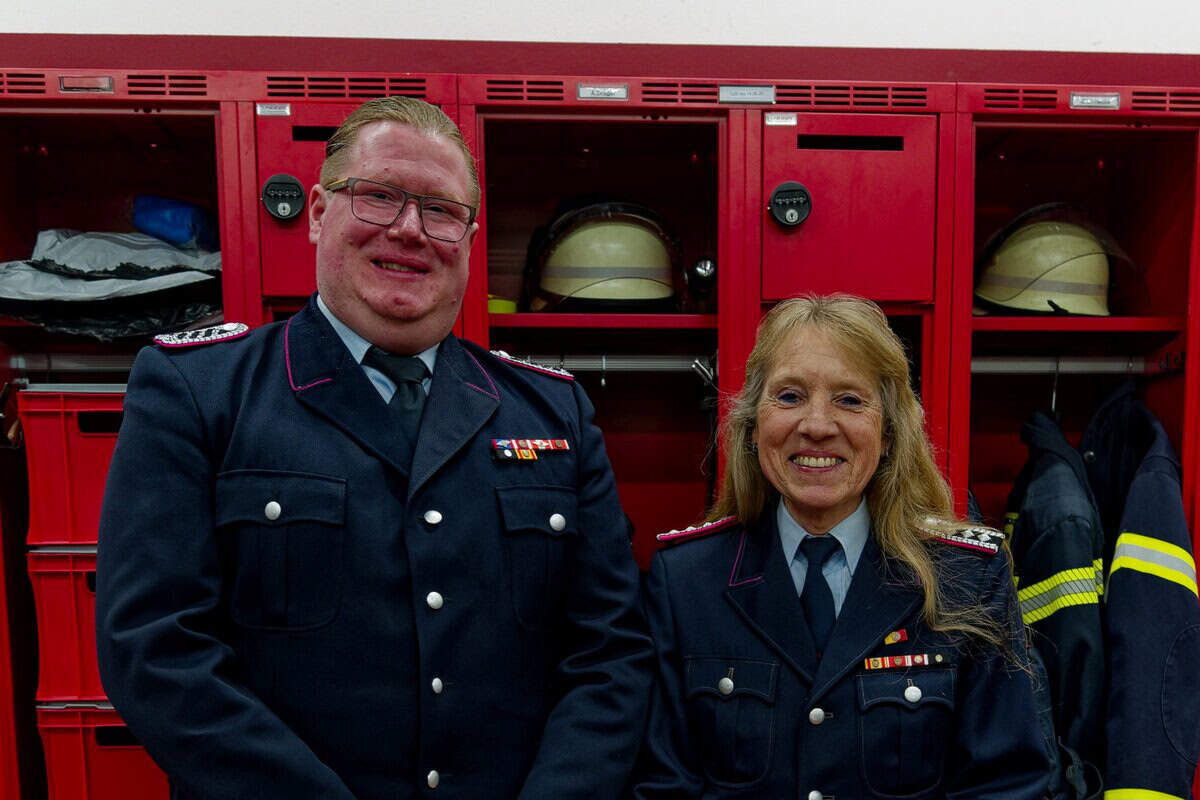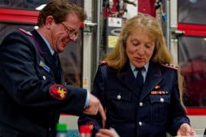 Der neue Stadtjugendfeuerwehrwart Steffen Ramm und die langjährige Stadtjugendfeuerwehrwartin Susanne Kluge.