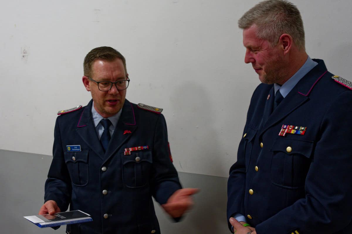 Foto, von links: Stadtbrandmeister Falk Bardenhagen mit Stellv. Kreisbrandmeister Stephan Dick