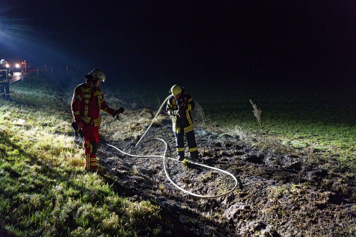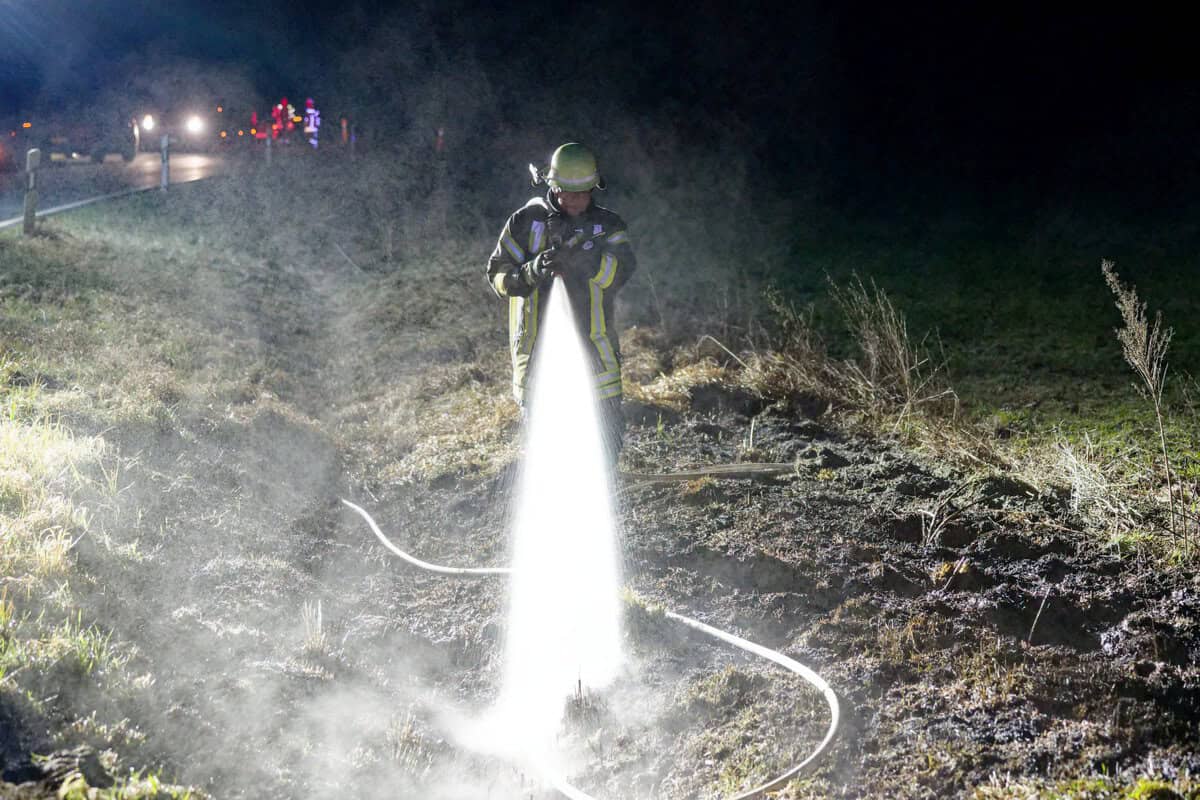 Die Feuerwehr Karze hatte das Feuer mit Löschrucksäcken schnell unter Kontrolle – die Feuerwehr Garze löschte mit einem Strahlrohr nach.