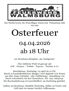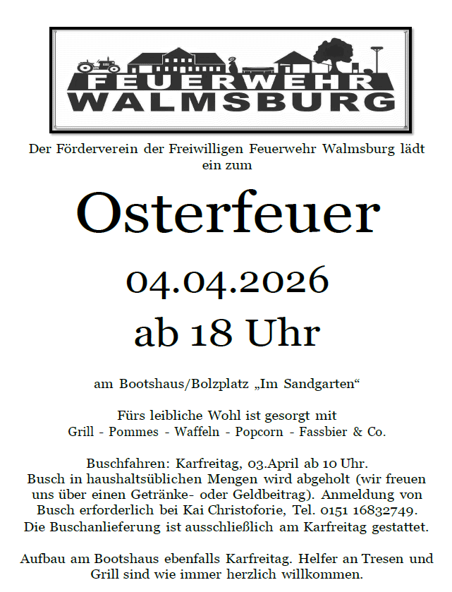 Osterfeuer und Brauchtumsfeuer der Bleckeder Ortsfeuerwehren 2026: