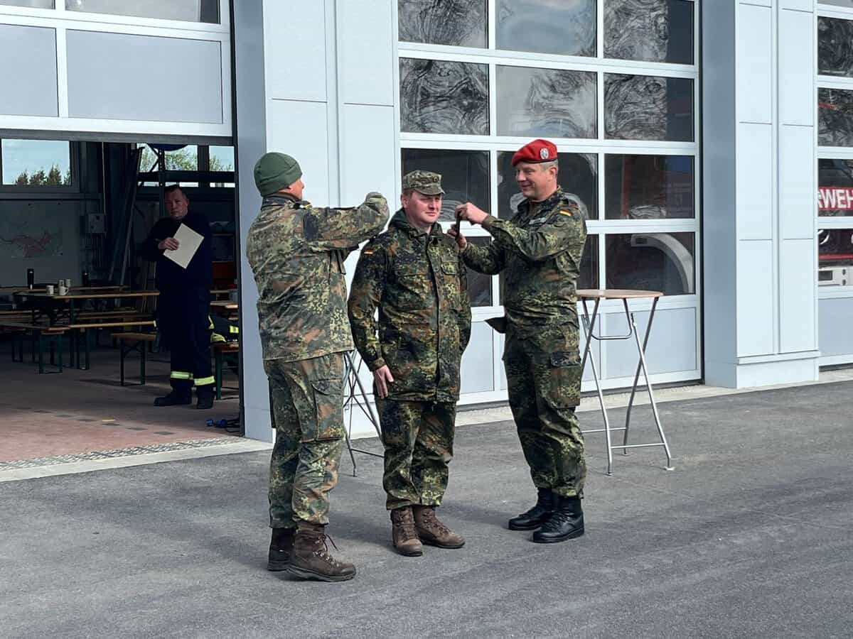Ein besonderer Moment dieser Fortbildung: Ein Reservist des Kreisverbindungskommandos wurde vom Leiter des KVK Lüneburg zum Oberfeldwebel befördert.