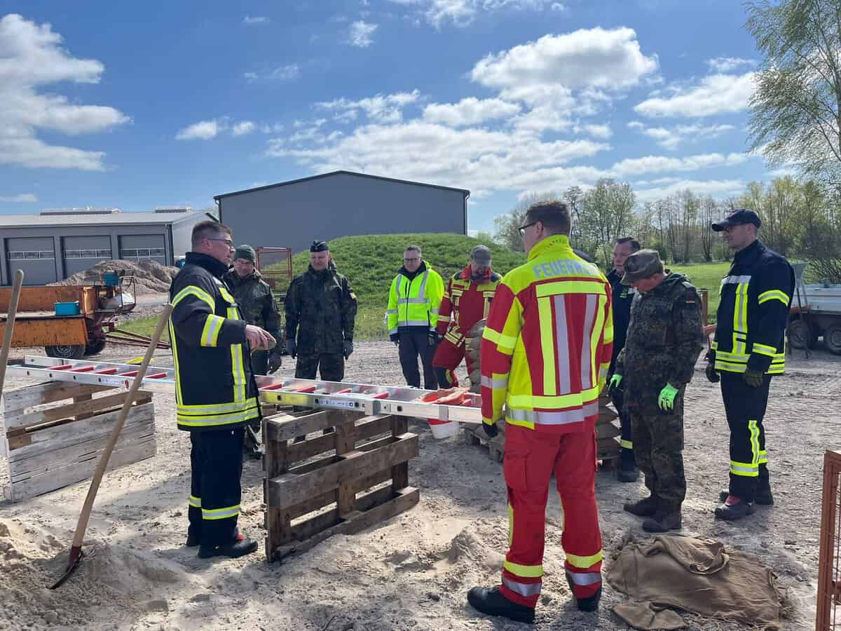 Am Samstag wurde das Tagesseminar Deichverteidigung für die Kreisfeuerwehr Lüneburg am Feuerwehrhaus Bleckede durchgeführt. Knapp 30 Teilnehmer aus dem gesamten Landkreis waren wieder dabei. Neben den Feuerwehren haben auch Reservisten des Kreisverbindungskommandos (KVK) an der Fortbildung teilgenommen.