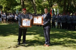 Patenschaft 2023 mit dem damaligen Batteriechef Christian Voigt und Bürgermeister Dennis Neumann.