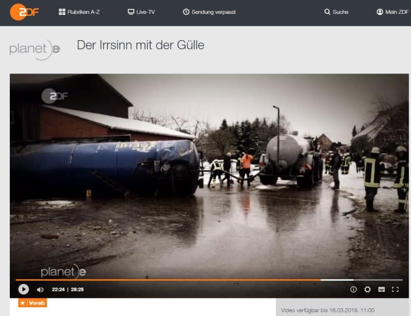 Heute Nachmittag um 16:30 Uhr sendet das ZDF „Der Irrsinn mit der Gülle“. In der …
