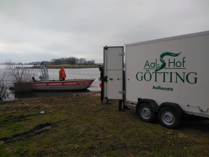 Heute werden vom Boot der Feuerwehr Bleckede 35.000 Glasaale in der Elbe ausgesetzt. Dabei handelt …